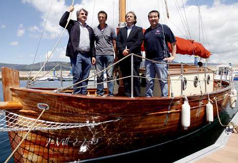 Juan José Dieste, Ramón Collazo, Avelino Ochoa y Manuel Fajardo, sobre una embarcación. MARCOS CREO